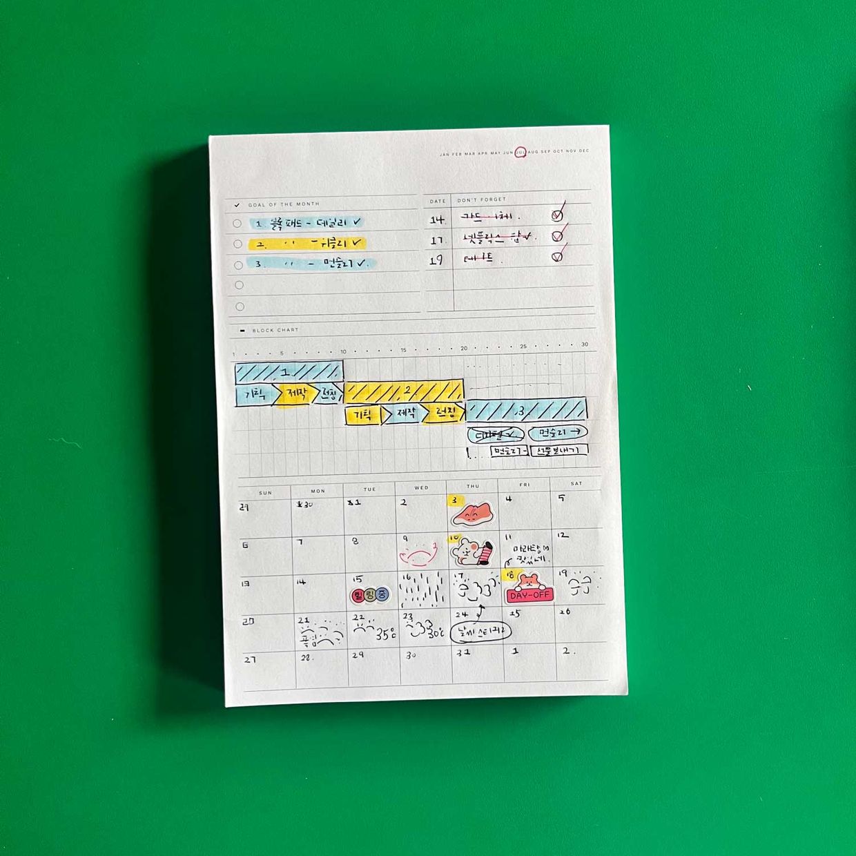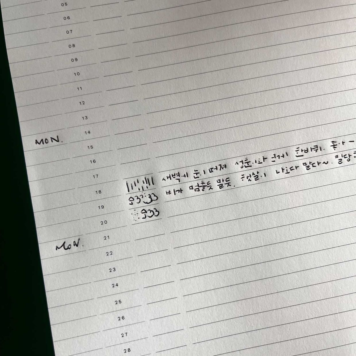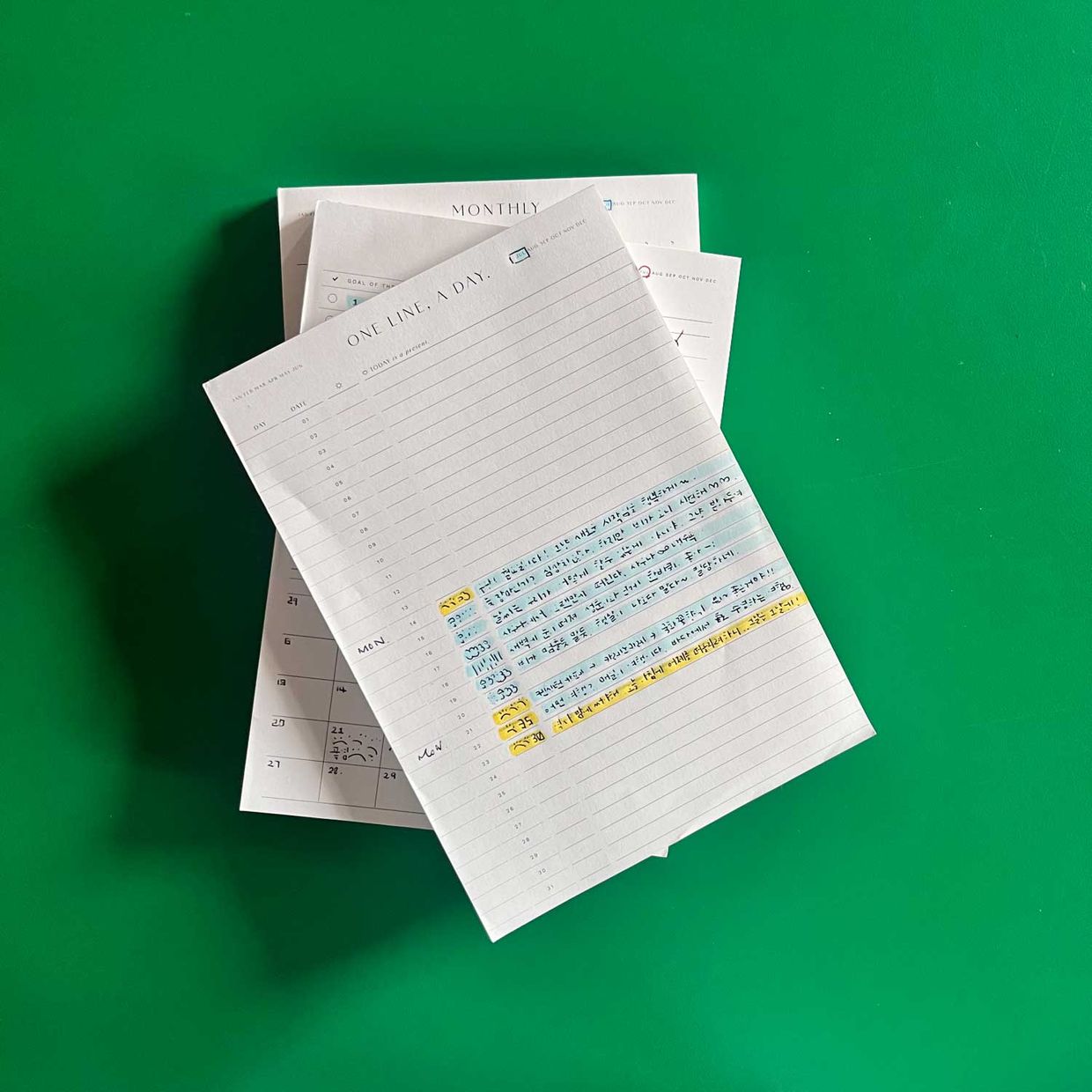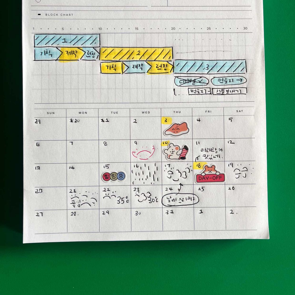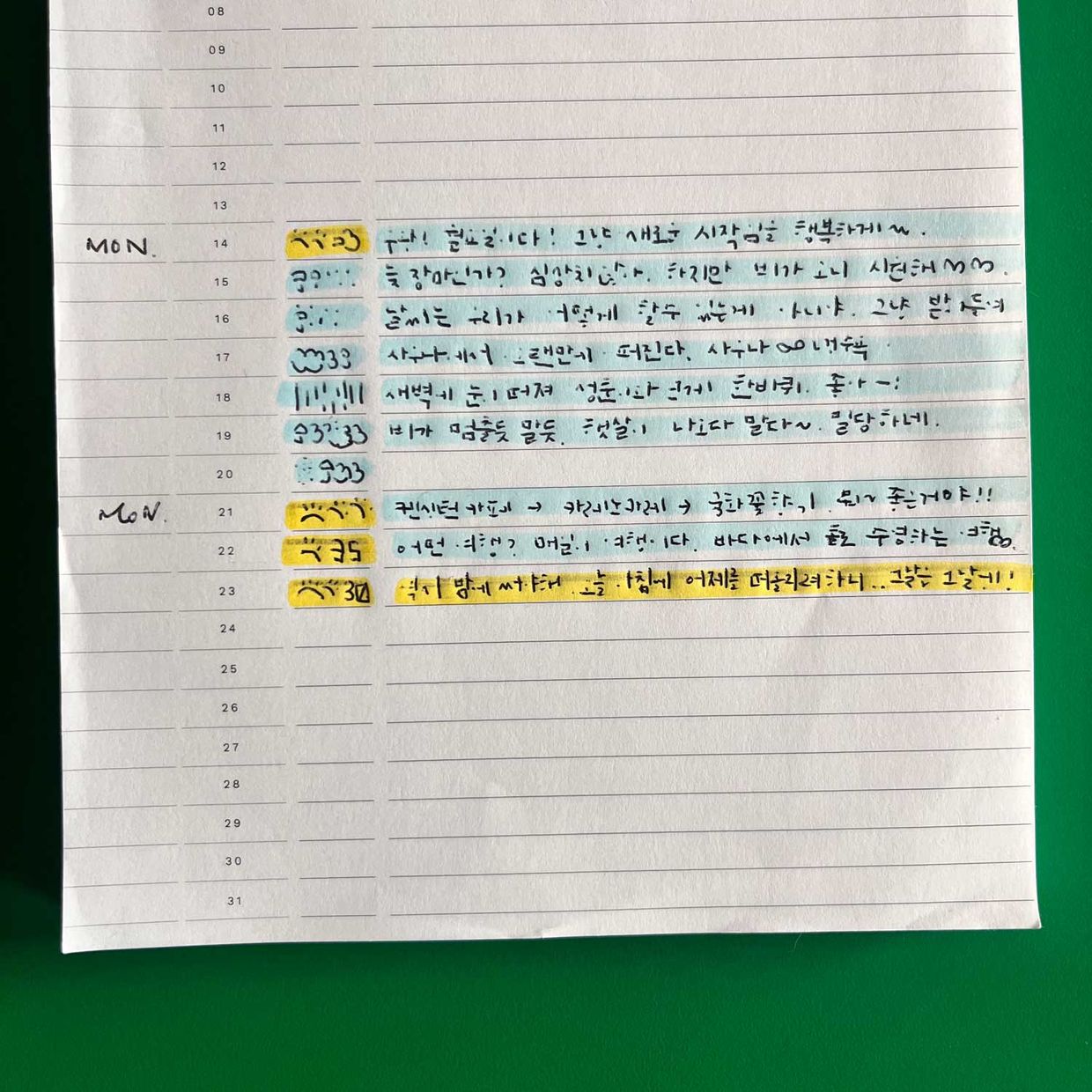 형광펜은 그날의 기분이나 날씨를 표시하는 용도로 쓰고 있어요.