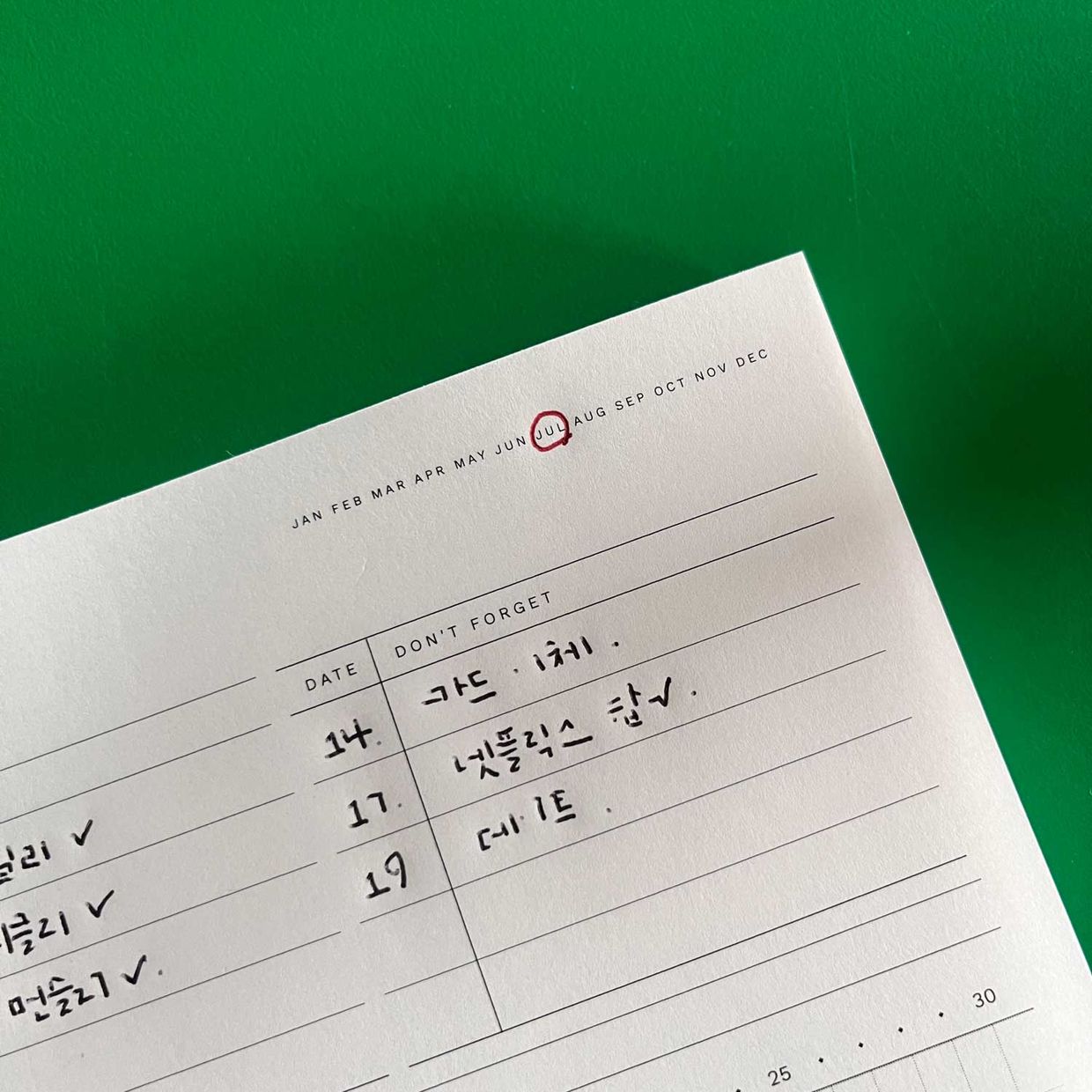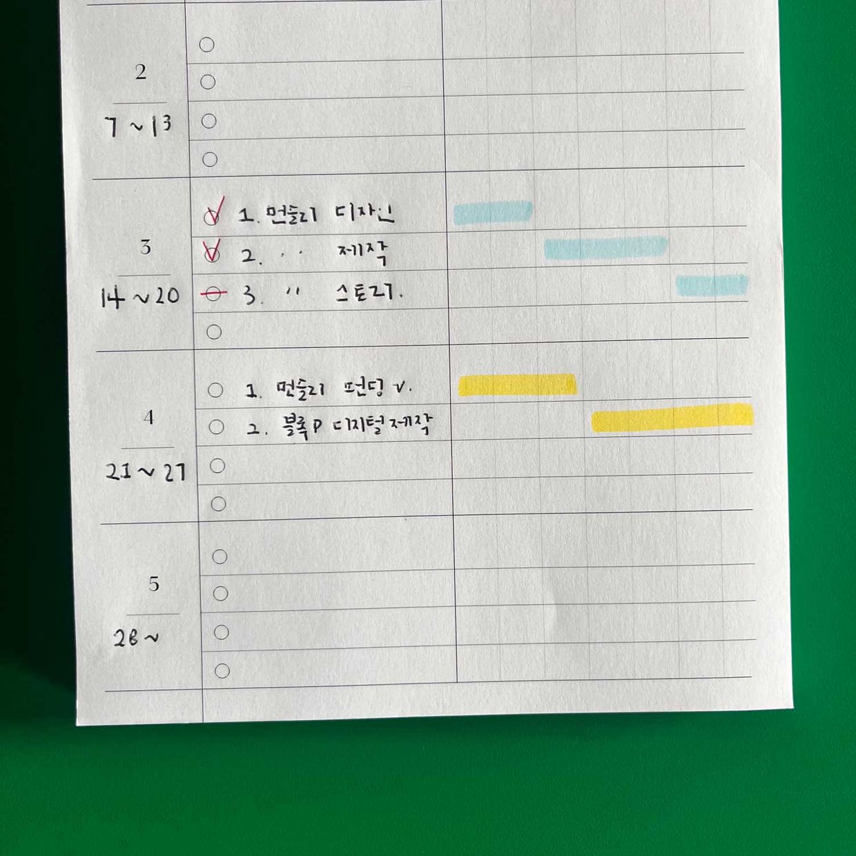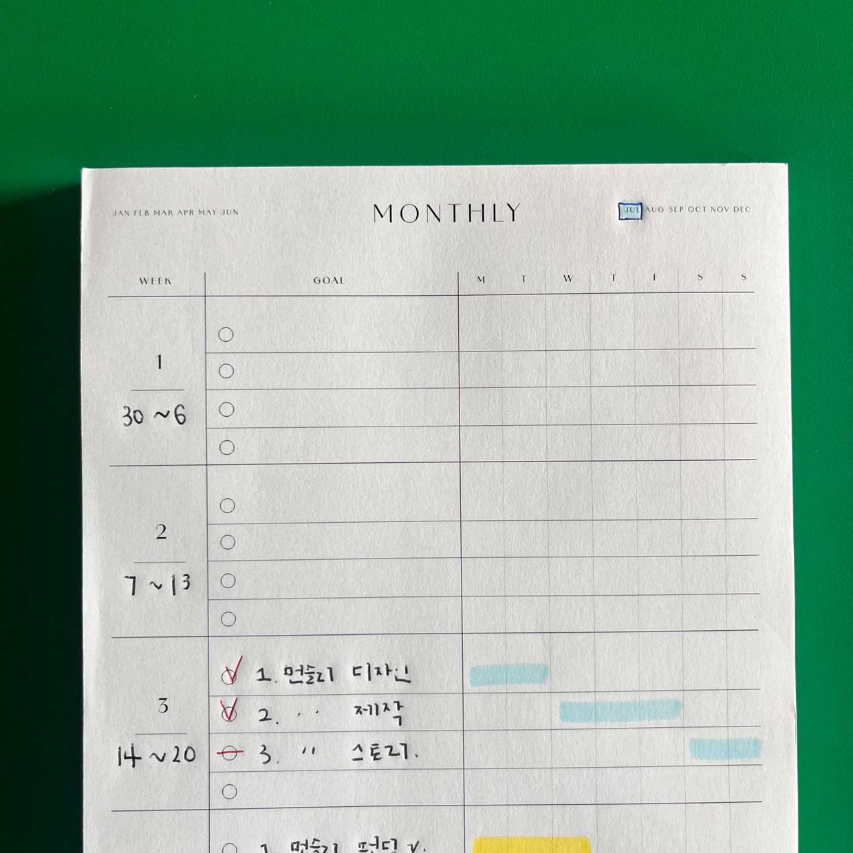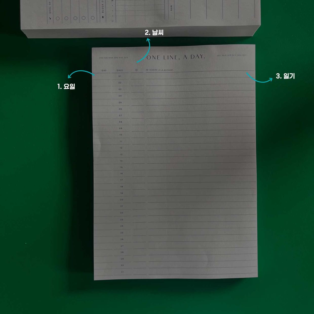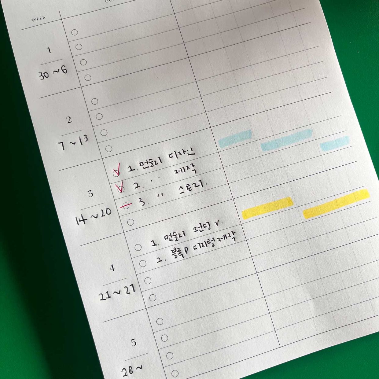 형광펜은 그날의 기분이나 날씨를 표시하는 용도로 쓰고 있어요.