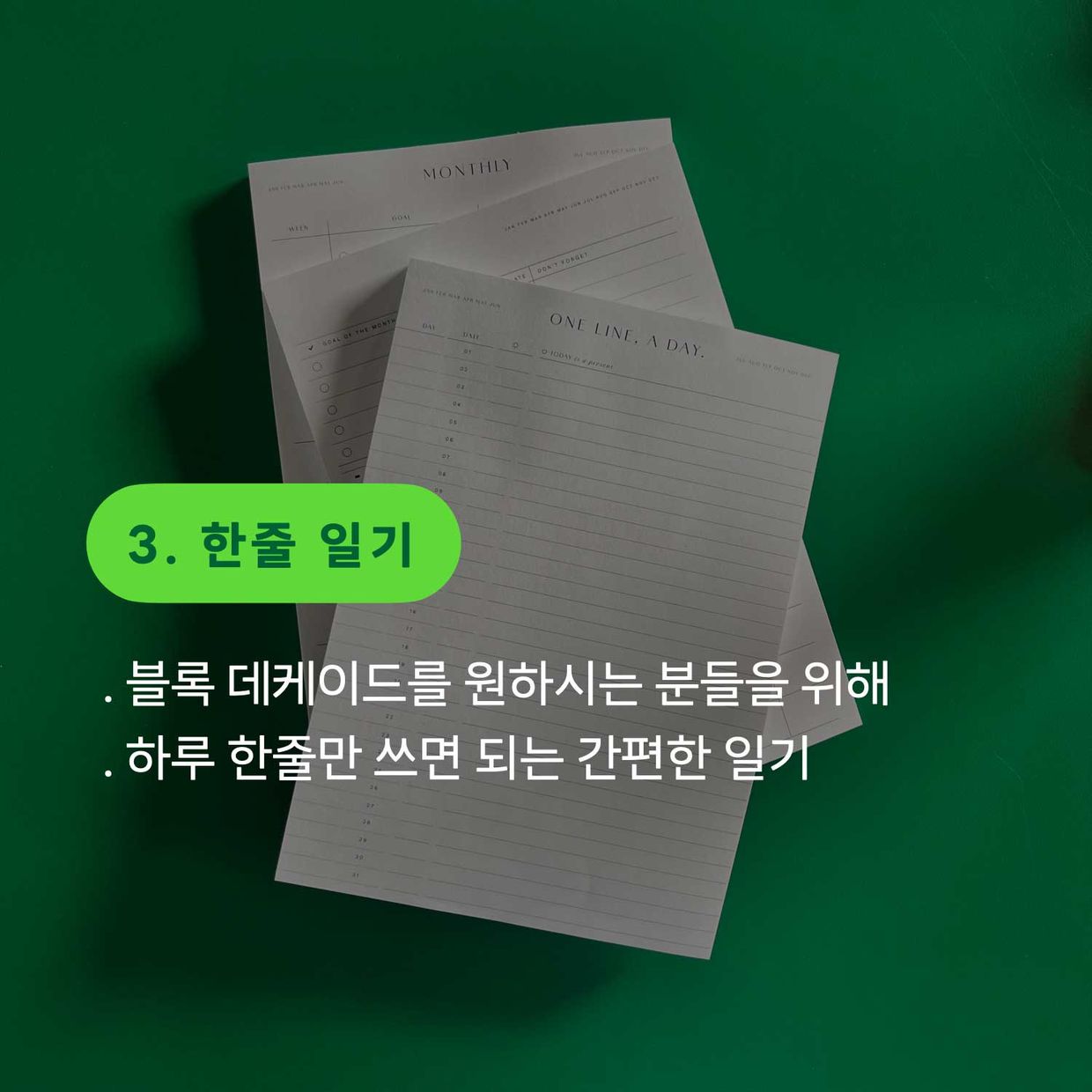 3. 하루 한줄 일기 입니다.