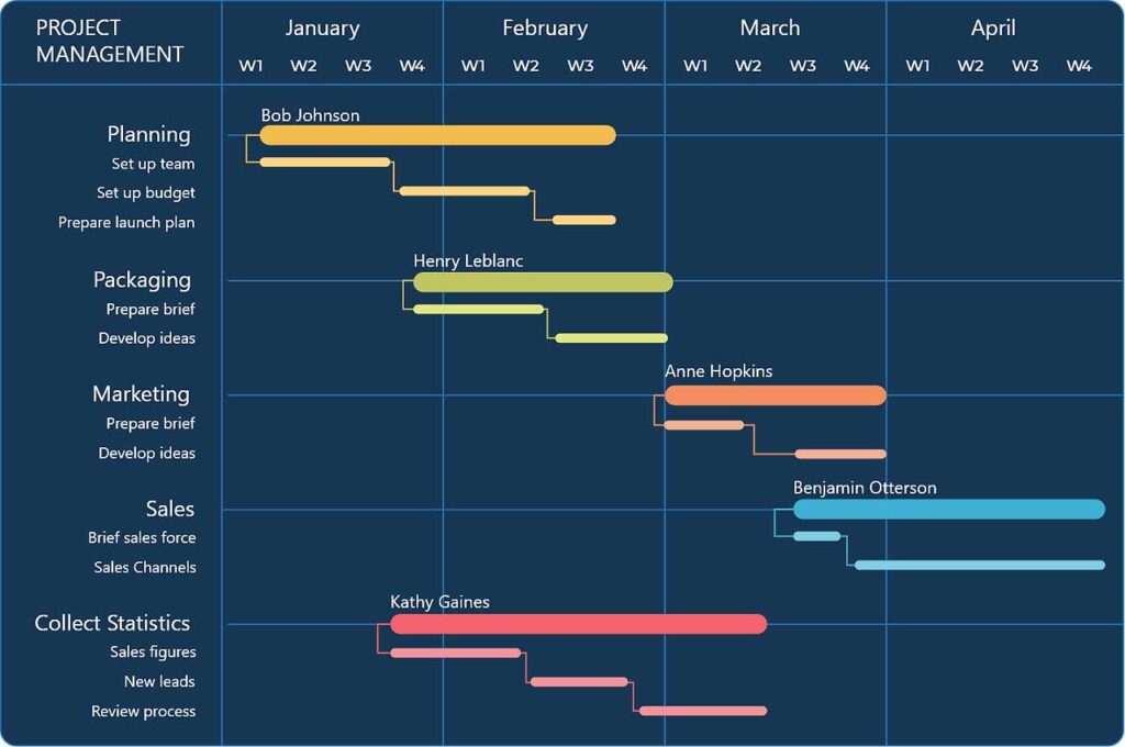 헨리 간트의 이름을 단 간트차트는 지금은 가장 기본적인 일정 관리 방법으로 사용된다. 바(Bar) 차트라는 직관성은 특히 엑셀이 대중화된 이후 그 활용도가 급격하게 커졌다.