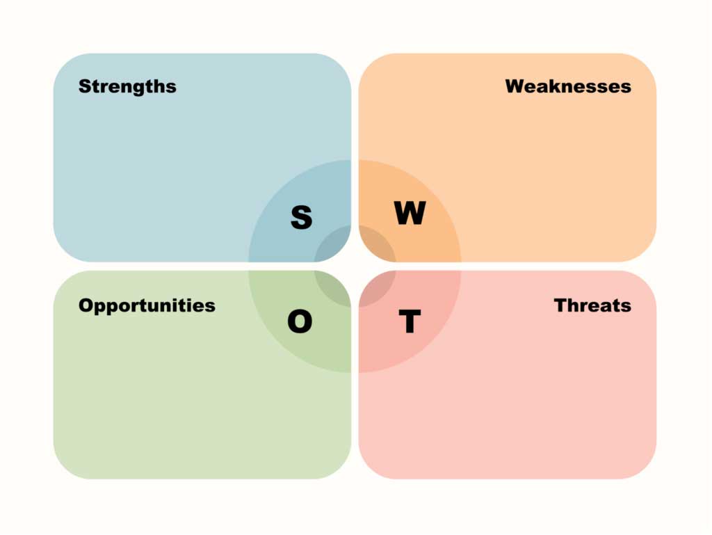 브랜드, 조직 또는 자기 자신을 대상으로 강점과 약점, 기회와 위협을 4분면으로 나눠서 정리하고, 이를 통해 전략을 기획하는 방법이다.