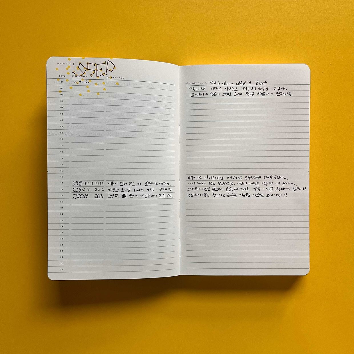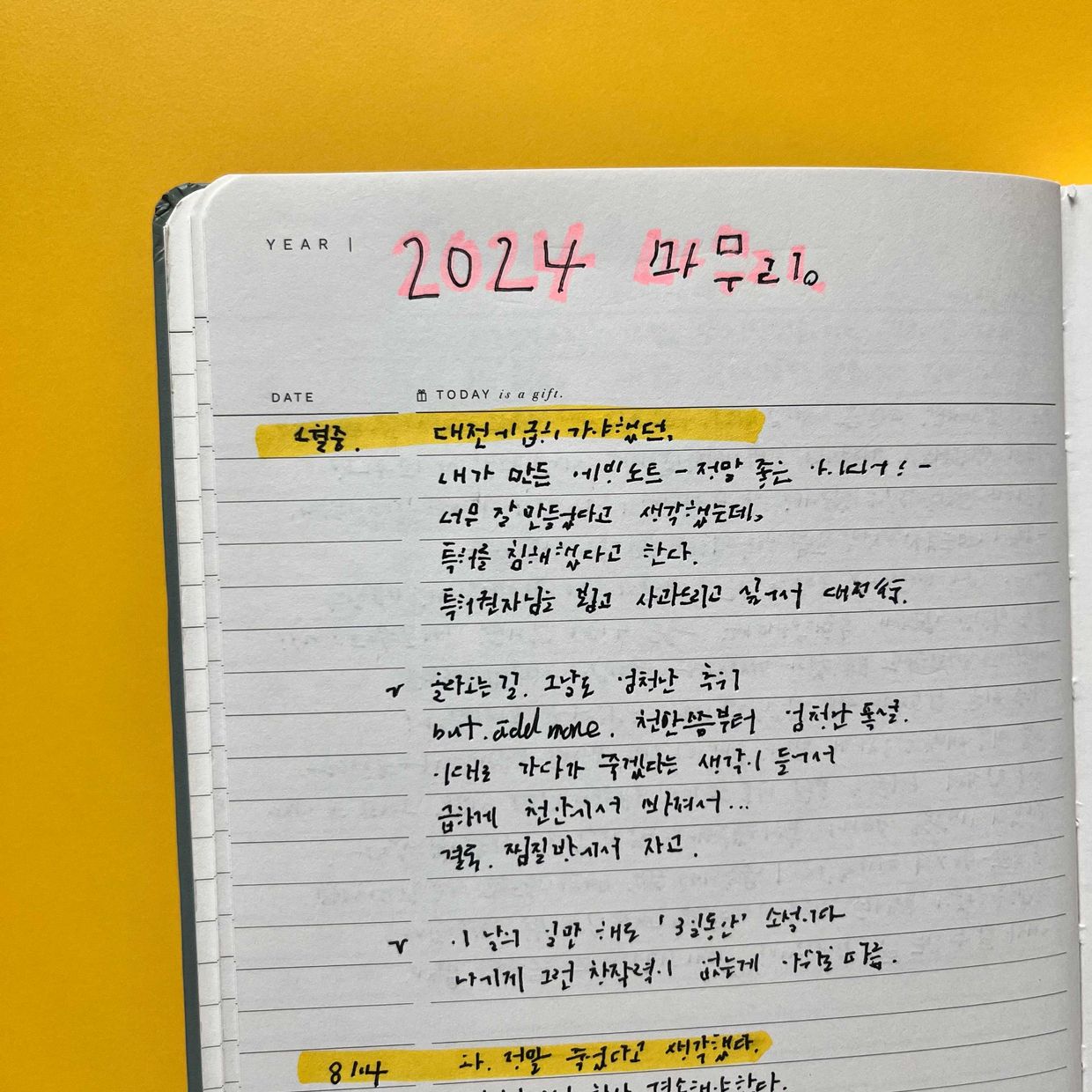 저는 잠자기 전에 한줄 쓰는 것을 목표로 하고 있어요!