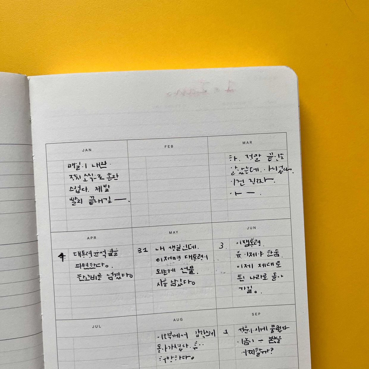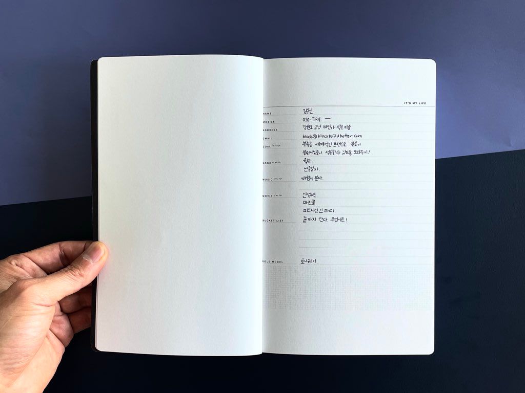 마이 데케이드는 매일 들고다니는 플래너가 아닙니다. 그런 용도로는 블록 플래너를 써주시면 감사합니다~ 😃☺️ 마이 데케이드는 하루에 한줄을, 하루를 정리하면서, 때론 일주일에 한번 씩 몰아서 (매일 쓰기 어렵다면) 작성하는 거예요. 그렇게 10년을 쓸 수 있습니다.