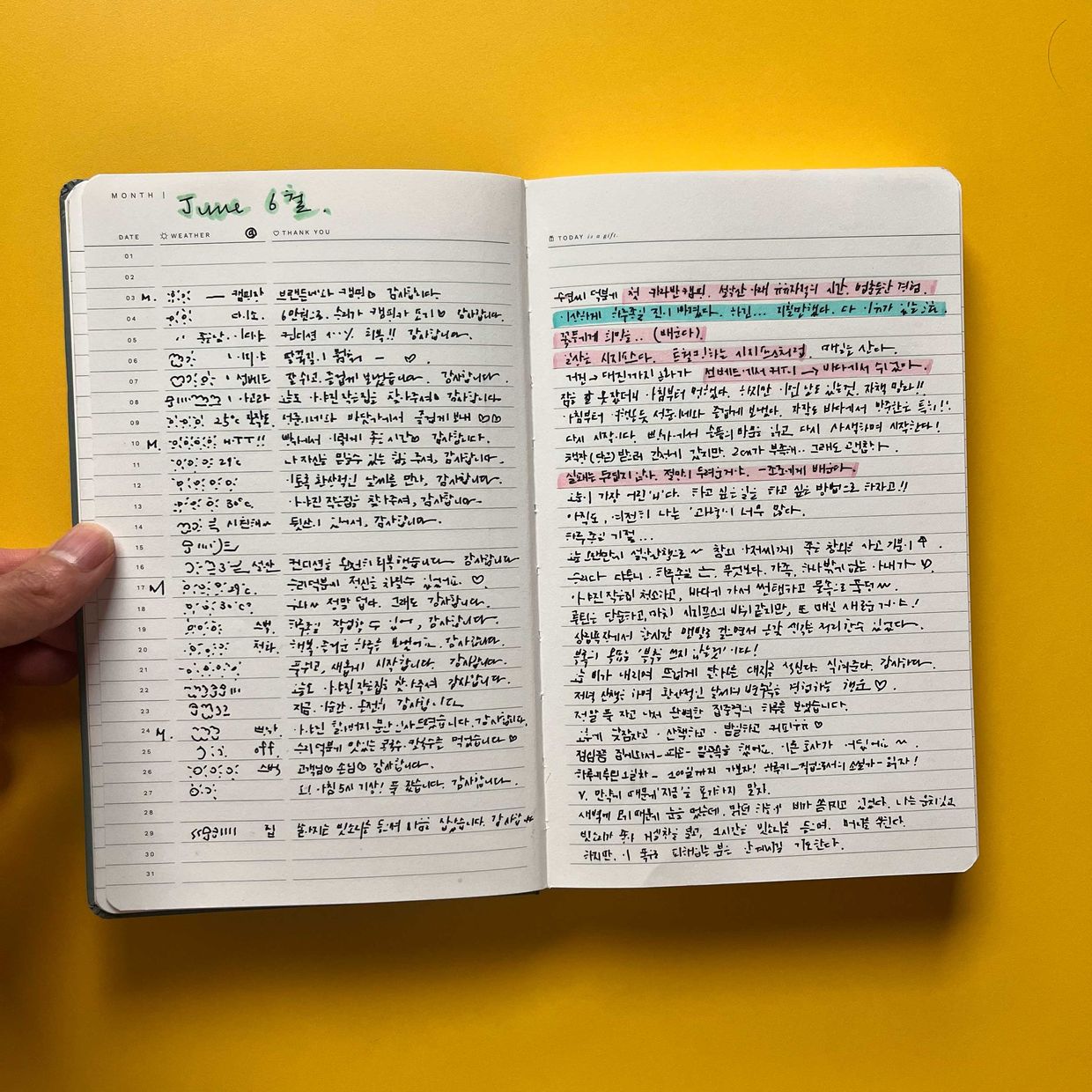 형광펜으로 구분만 해도 쓰는 재미가 더 커집니다.