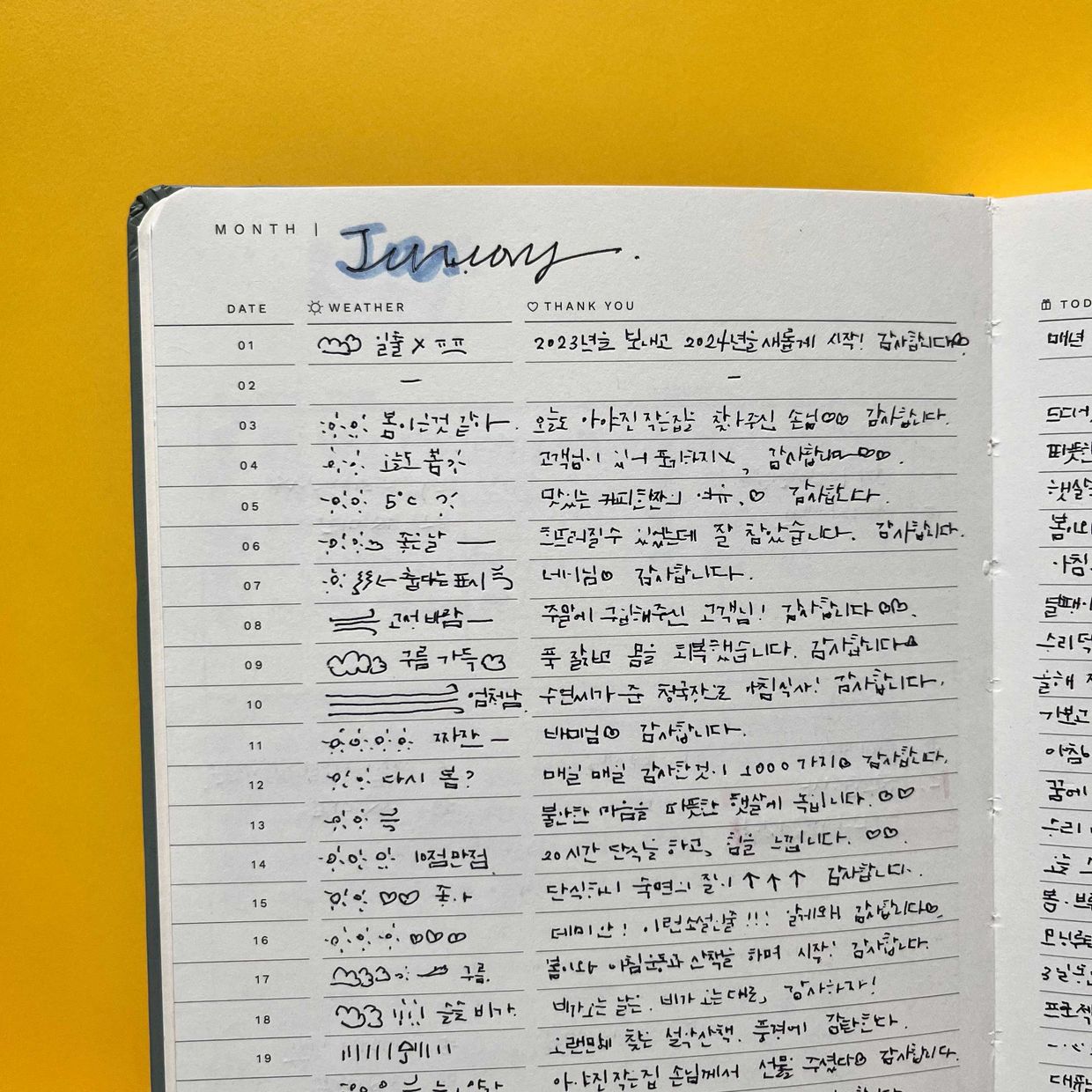 빠진날은 빠진대로~ 하루 한줄만 써보세요.
