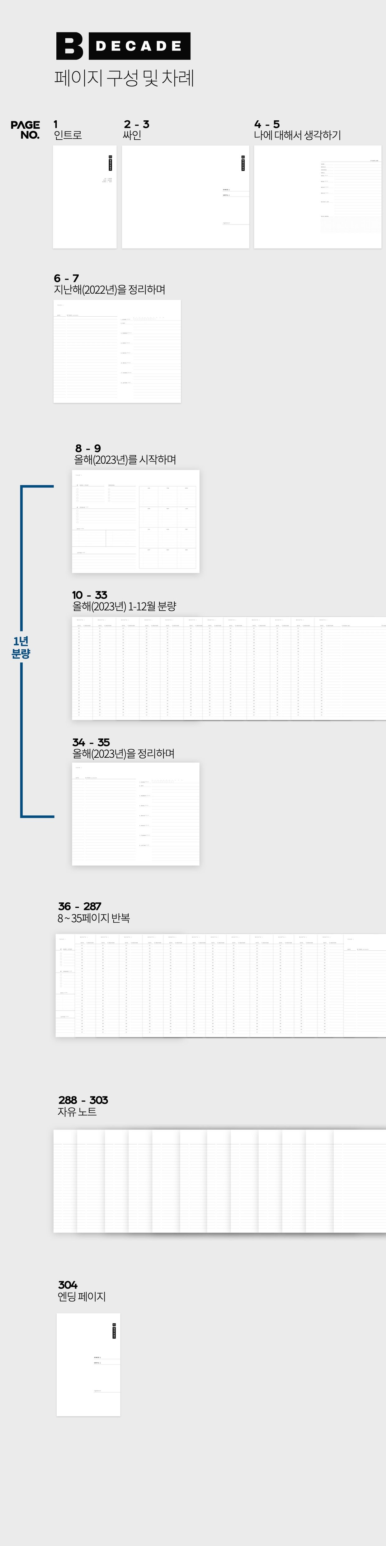 전체 페이지의 구성과 순서는 다음과 같습니다.